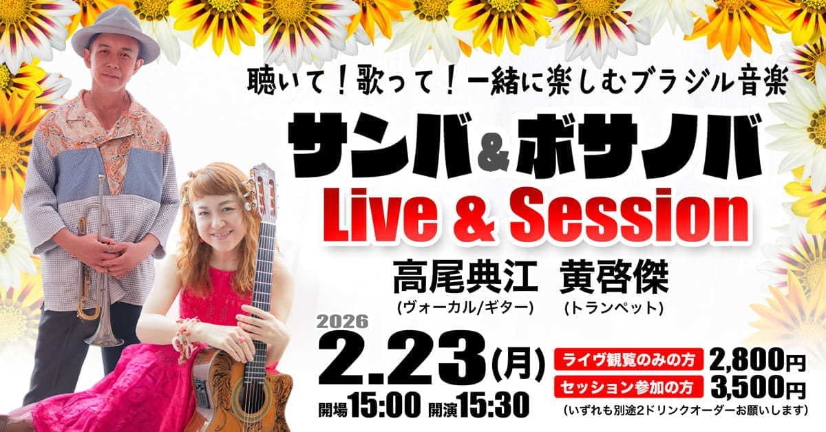 | 残席わずか | 12月23日(土) 高尾典江 & 黄啓傑 13月22日(日) 丸山ももたろう 14月19日(日) フラリーパッド |